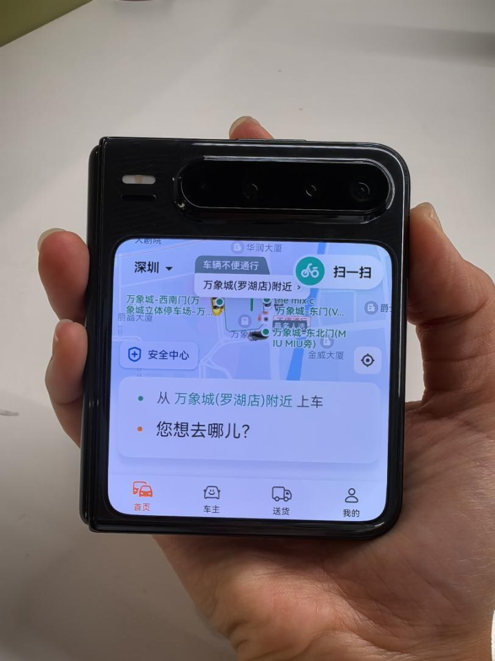 除了音乐,这块外屏更是通勤路上的“效率助手”。出门乘车时,花瓣地图在外屏上能清晰显示路线和目的地信息,导航提醒都无缝衔接,无需频繁展开手机查看;滴滴出行支持外屏一键叫车,车俩信息随时掌握;健身时,Keep配速和卡路里等数据也一目了然,运动与数据监控两不误。